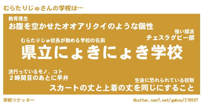 | 肩書あだ名 | 『むらたりじゅ店長』『むらたりじゅ校長』 |