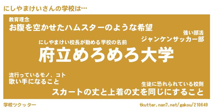 | 肩書あだ名 | 『にしやまけい御曹司』 |