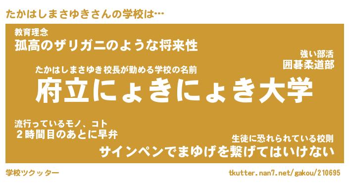 | 女子向けラノベタイトル風あだ名 | 『(仮)たかはしまさゆきのやんごとなき事情』 |