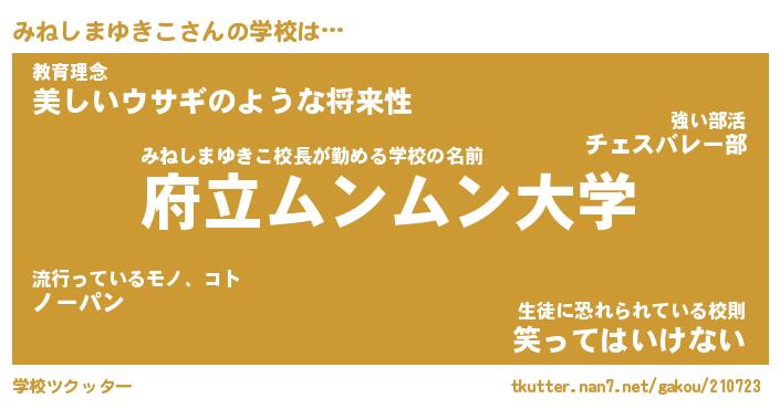 | 男性向けラノベタイトル風あだ名 | 『みねしまゆきこの憂鬱』 |