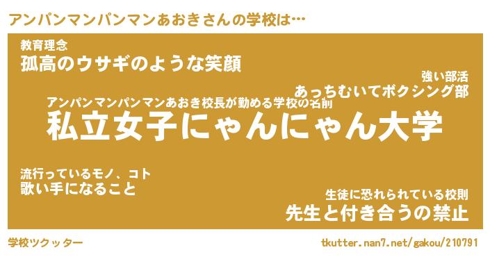 | 肩書あだ名 | 『アンパンマンパンマンあおき社長令嬢』 |