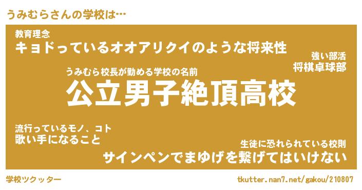 | 男性向けラノベタイトル風あだ名 | 『うみむらの憂鬱』 |