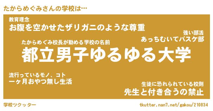| 男性向けラノベタイトル風あだ名 | 『タカラメグミアートオンライン』 |