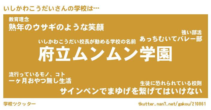 | 男性向けラノベタイトル風あだ名 | 『いしかわこうだいの憂鬱』 |