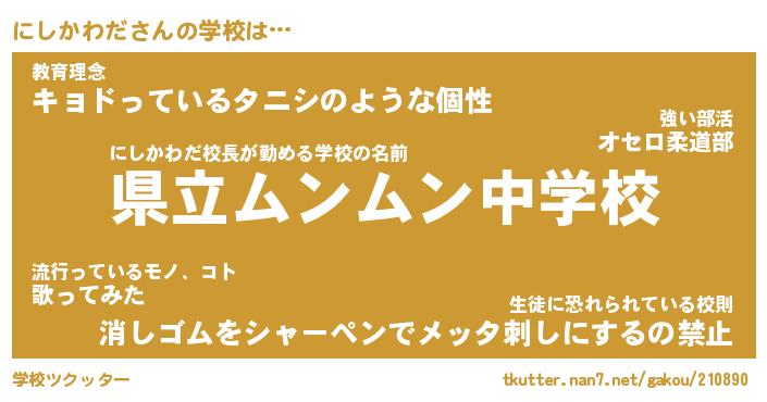 | 男性向けラノベタイトル風あだ名 | 『にしかわだの憂鬱』 |