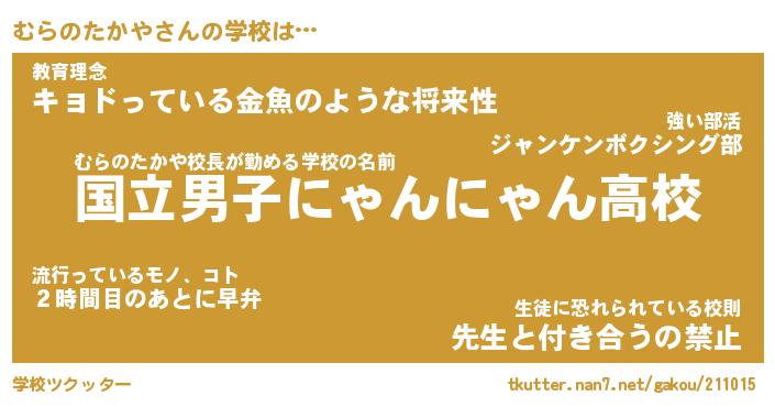 | 男性向けラノベタイトル風あだ名 | 『むらのたかやの憂鬱』 |