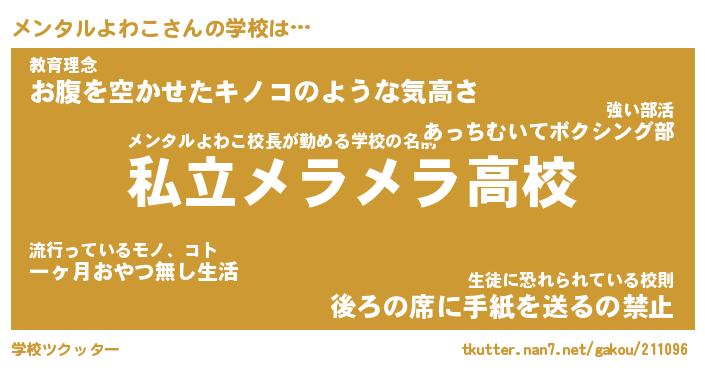 | 男性向けラノベタイトル風あだ名 | 『メンタルよわこの憂鬱』 |