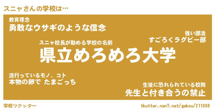 | ヘコむあだ名 | 『スニっふぃ~』『つくし』『スニお』 |
