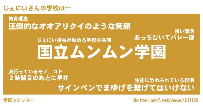 | 男性向けラノベタイトル風あだ名 | 『じぇにいの憂鬱』 |
