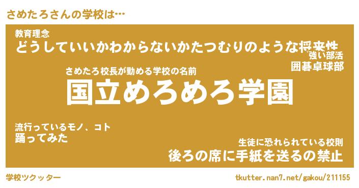 | 意味不明あだ名 | 『ペロリンさめたろ』『永久保存さめたろ』 |
