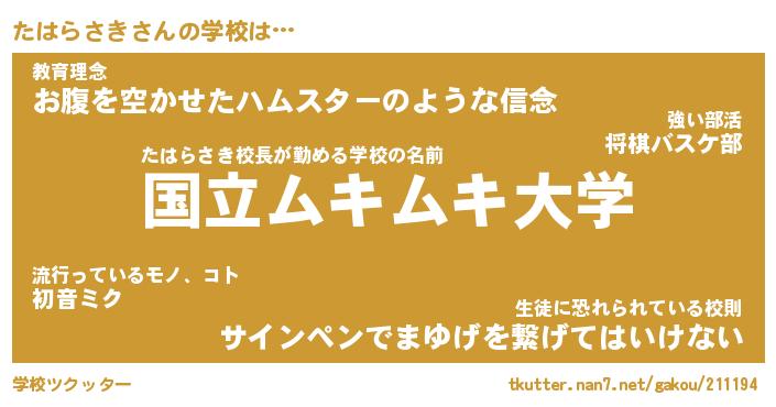 | 男性向けラノベタイトル風あだ名 | 『たはらさきの憂鬱』 |