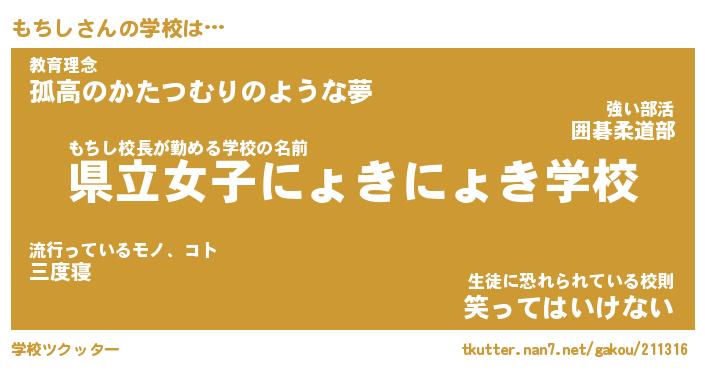 | ヘコむあだ名 | 『もちにゅー』『つくし』『もちっぺ』 |