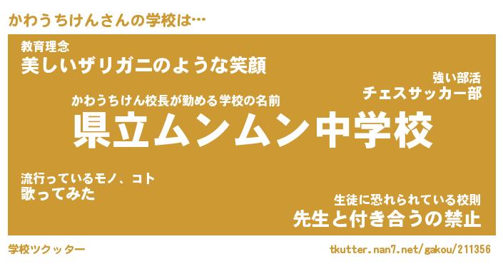 | 男性向けラノベタイトル風あだ名 | 『かわうちけんの憂鬱』 |