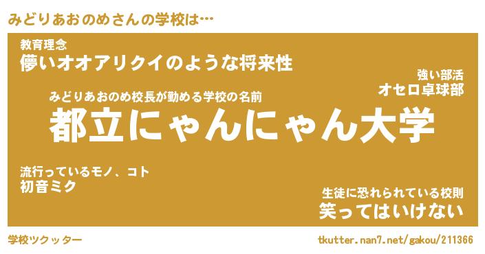 | 男性向けラノベタイトル風あだ名 | 『みどりあおのめの憂鬱』 |