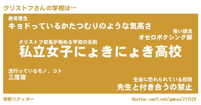 | 肩書あだ名 | 『クリストフ店長』『クリストフ総理大臣』 |