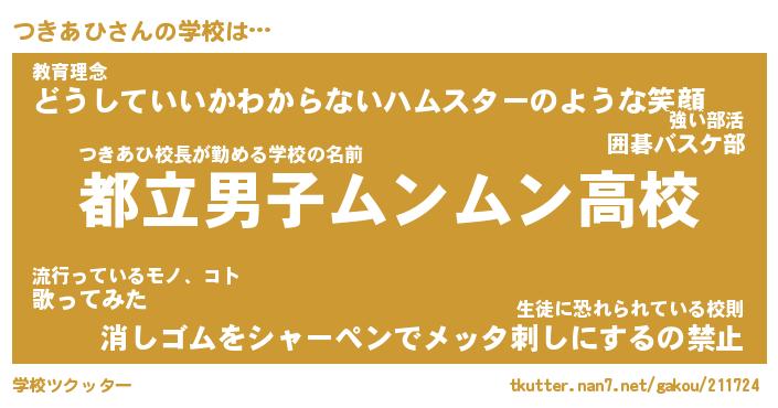 | ヒーロー風カッコイイあだ名 | 『スーパーツキアヒ』『天弓騎士ツキ』 |