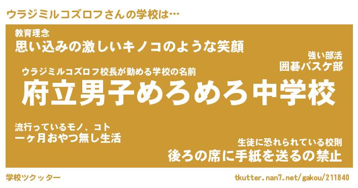 | 欧米人風あだ名 | 『マイケルウラジミルコズロフ』 |