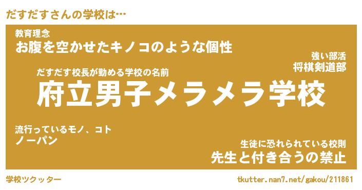 | 女子向けラノベタイトル風あだ名 | 『だすだす姫と円卓の騎士』 |