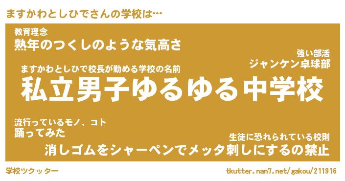 | 先生 | ますかわとしひで先生が勤める学校名『県立しゃくれ中学校』 |