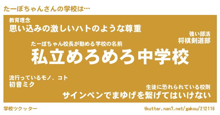 | 男性向けラノベタイトル風あだ名 | 『たーぼちゃんの憂鬱』 |