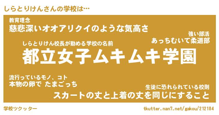 | 肩書あだ名 | 『しらとりけん社長』『しらとりけん班長』 |
