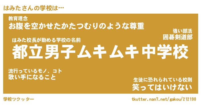 | 公立男子ムキムキ中学校は(略 …「」 | 10月03日 07:36 |