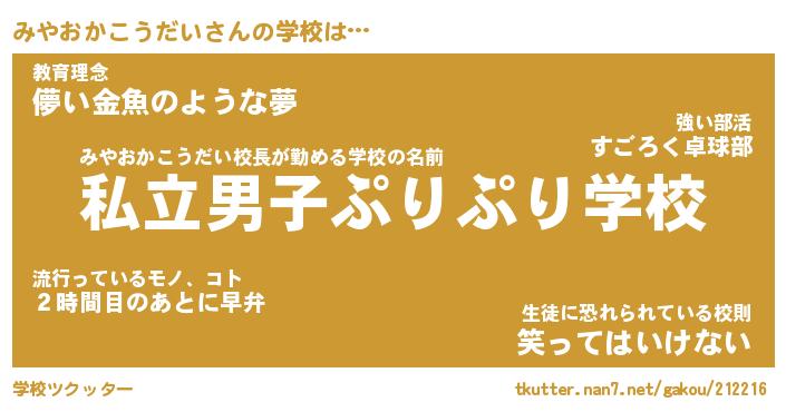 | 男性向けラノベタイトル風あだ名 | 『みやおかこうだいの憂鬱』 |