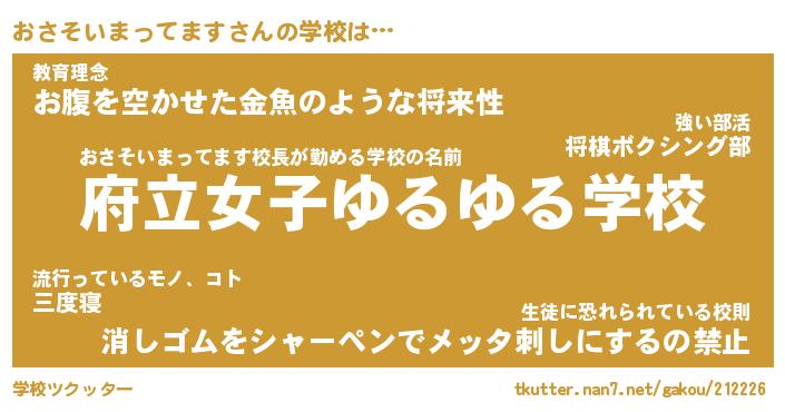 | 先生 | おさそいまってます先生が勤める学校名『区立しゃくれ小学校』 |