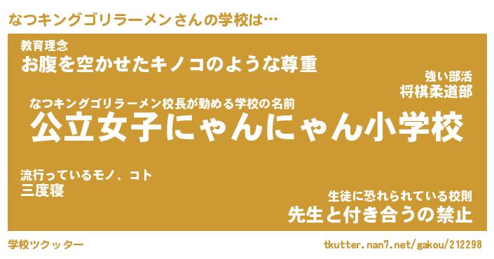 | ヒーロー風カッコイイあだ名 | 『スーパーナツキングゴリラーメン』 |