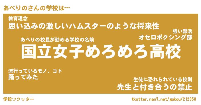 | 意味不明あだ名 | 『ペロリンあべりの』『永久保存あべりの』 |