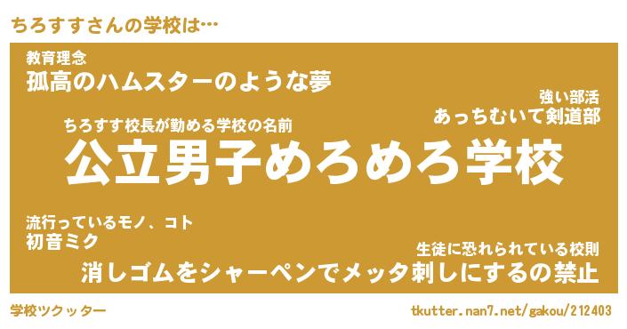 | 公立男子ムキムキ中学校は(略 …「」 | 10月03日 07:36 |