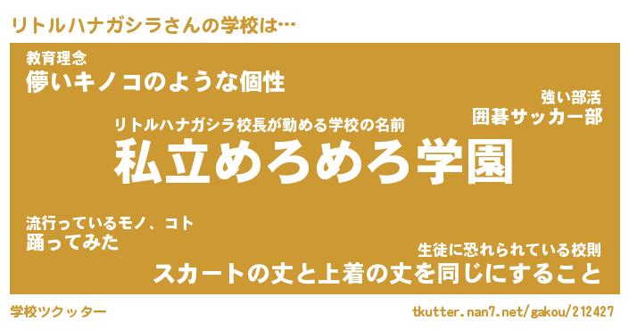 | 男性向けラノベタイトル風あだ名 | 『リトルハナガシラの憂鬱』 |