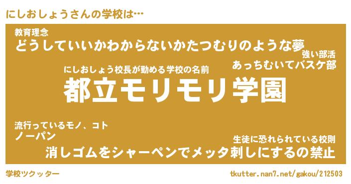 | 男性向けラノベタイトル風あだ名 | 『にしおしょうの憂鬱』 |