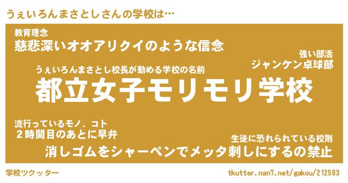| 欧米人風あだ名 | 『マイケルうぇいろんまさとし』 |