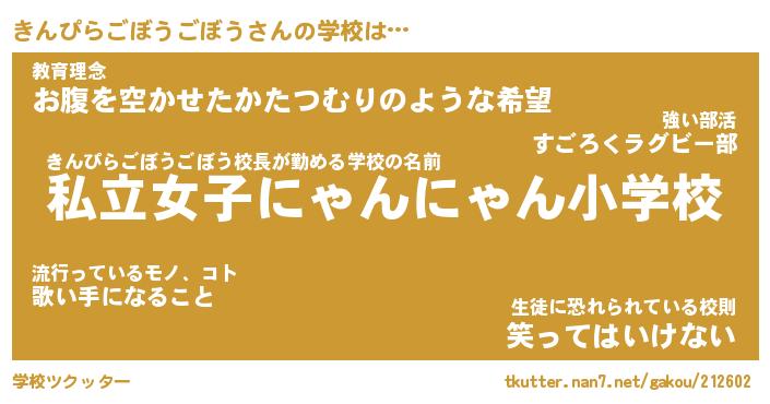 | ヒーロー風カッコイイあだ名 | 『スーパーキンピラゴボウゴボウ』 |