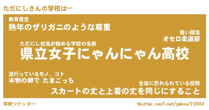 | 肩書あだ名 | 『ただにし社長令嬢』『ただにし大統領』 |