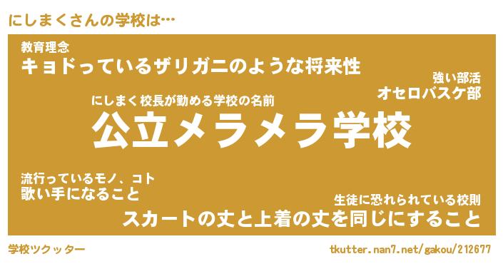 | ファンタジー風あだ名 | 『ニシフェル』『エターナルニシマクー』 |