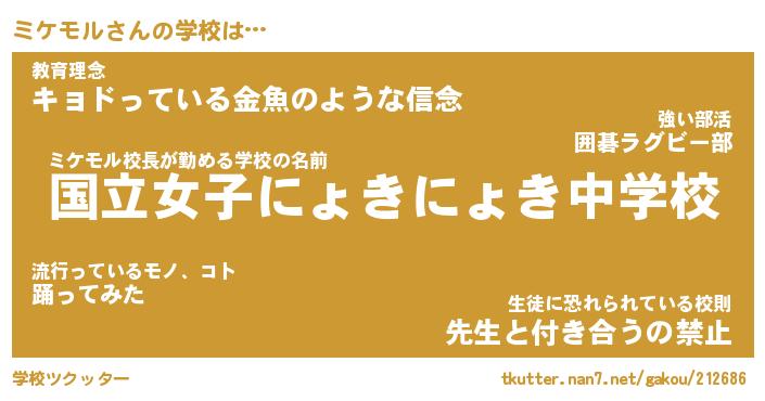 | 意味不明あだ名 | 『ペロリンミケモル』『永久保存ミケモル』 |