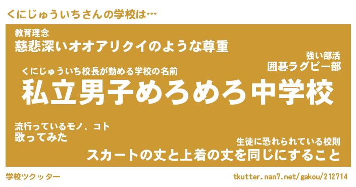 | 男性向けラノベタイトル風あだ名 | 『くにじゅういちの憂鬱』 |