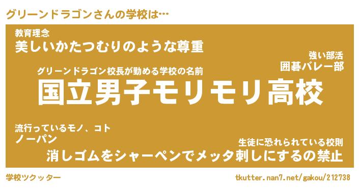 | 男性向けラノベタイトル風あだ名 | 『グリーンドラゴンの憂鬱』 |