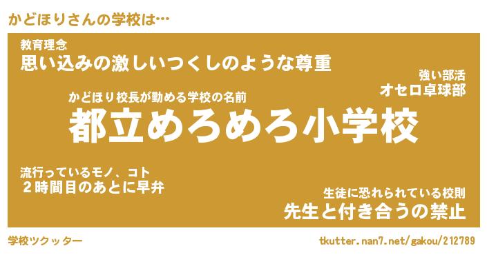 | 意味不明あだ名 | 『ペロリンかどほり』『永久保存かどほり』 |