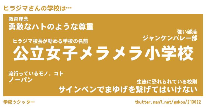 | 意味不明あだ名 | 『ペロリンヒラジマ』『永久保存ヒラジマ』 |