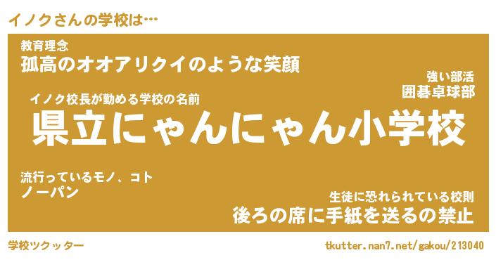 | ピコ太郎風あだ名 | 『イコ四郎』『ピイ太郎』『イノ一郎』 |