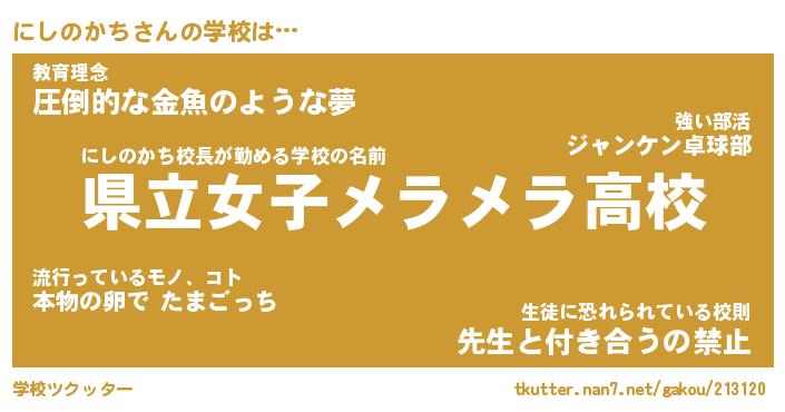 | ファンタジー風あだ名 | 『ニシフェル』『エターナルニシノカチー』 |