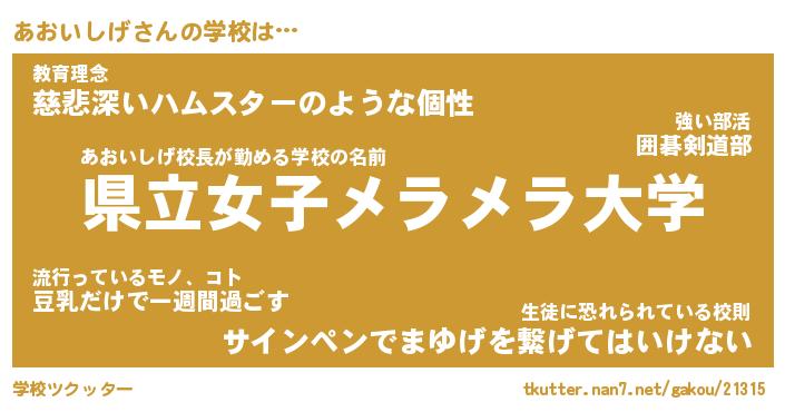 | ファンタジー風あだ名 | 『アオフェル』『エターナルアオイシゲー』 |