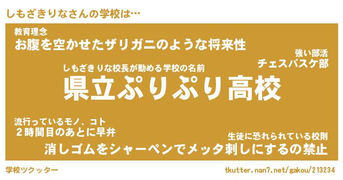 | 胡散臭い通販商品みたいなあだ名 | 『必ず成功する霊験あらたかなお札…その名も「しもざきりな」』 |