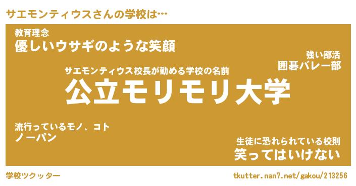 | 男性向けラノベタイトル風あだ名 | 『サエモンティウスの憂鬱』 |