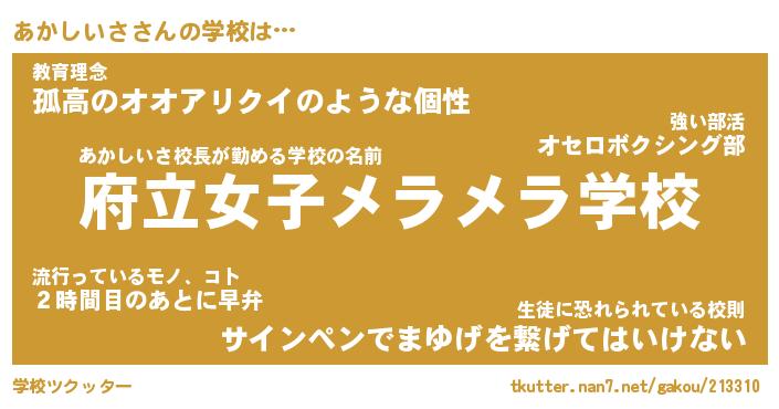 | ファンタジー風あだ名 | 『アカフェル』『エターナルアカシイサー』 |