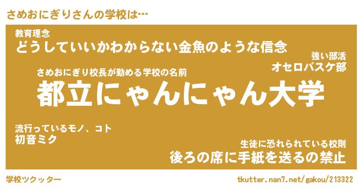 | 男性向けラノベタイトル風あだ名 | 『さめおにぎりの憂鬱』 |