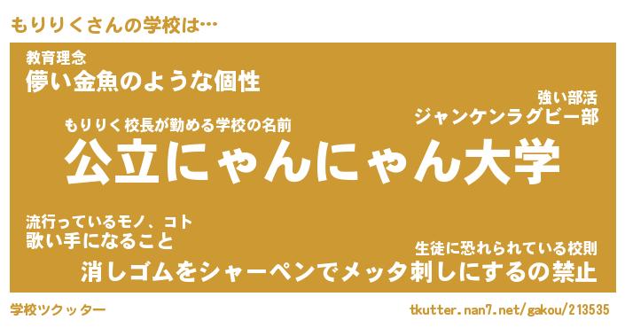 | ヘコむあだ名 | 『もりもー』『豆乳』『もりを』 |